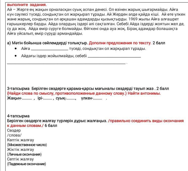 а) Айға күн сәулесі түседі, сондықтан ол жарқырап тұрады. Айдағы іздер жойылмайды, себебі Айда іздерді жоятын жел де, су да жоқ.