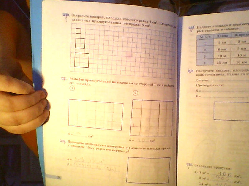 Закрасьте квадрат,площадь которого 1 квадратный см. Начертите два различных прямоугольника площадью 6 квадратных см.