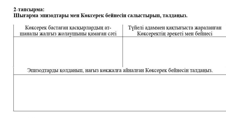 1. Бір аязды күні ашыққан Көксеректің тобына жалғыз ат жегілген шаналы жолаушы кнзігеді. Қасқырлардың жартысы шанаға жегілген аттың алдынан орап жартысы шананың соңына түседі.Аттың есі шығып жүре алмай қалады, сол сәтте жолаушы айқайлап қашады. Қасқырлар атқа лап қойып, атты жығып жей бастағанда Көксерек қасына бір-екі қаншық қасқырды ертіп адамның артынан қарды боратып қуады. Қорыққан жолаушы құлап түскенде Көксерек бас салмақшы болғанда алдарынан аттылар айқайлап шыға келіп жолпушыны құтқарып қалады. Содан кейін Көксерек өте ызалы болып алды, тіпті ырқына көнбеген қасқырларды талап тастайтын болды.