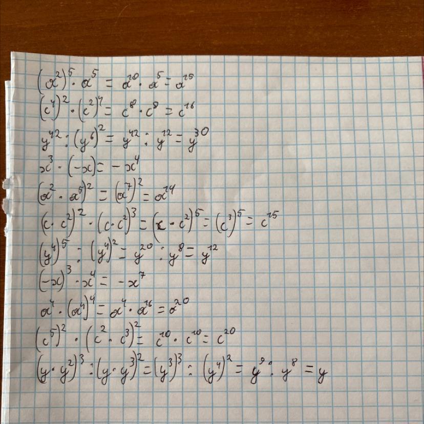 (y⁴)⁵ : (y⁴)² = y²⁰ : y⁸ = y²⁰⁻⁸ = y¹²