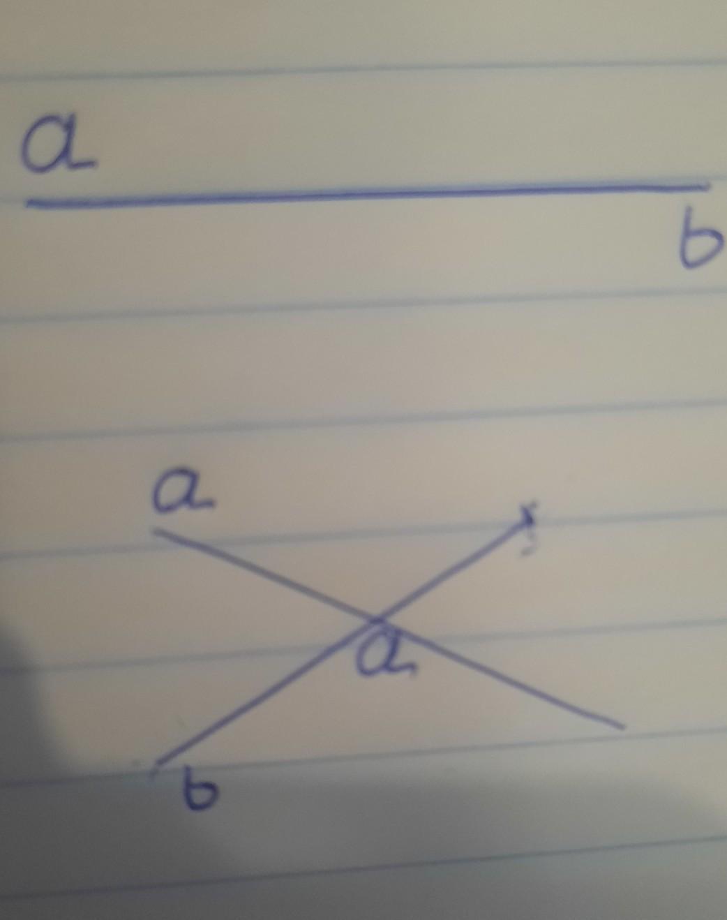Проведите прямую линию. Нарисуйте прямую b, пересекающуюся с прямой a, прямую s, пересекающуюся с прямой a.