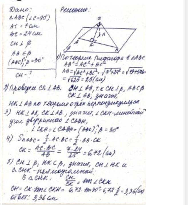Довжини катетів прямокутного трикутника 7 см і 24 см. Знайти значення синуса і косинуса гострого кута між гіпотенузою і проведеною до неї медіаною.