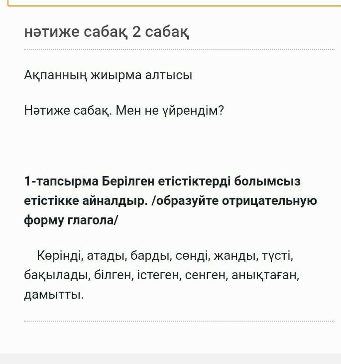 көрінбеді, атамады, бармады, сөнбеді жанбады, түспеді, бақыламады, білмеген, істемеген, сенбеген, анықтамаған, дамытпады