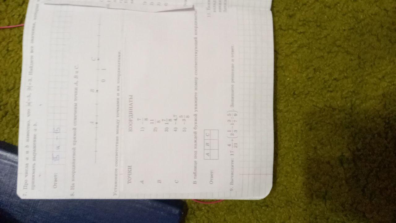 На координатной прямой отмечены точки А , В и С . Установите соответствие между точками и координатами. В таблице под каждой буквой укажите номер соответствующей координаты