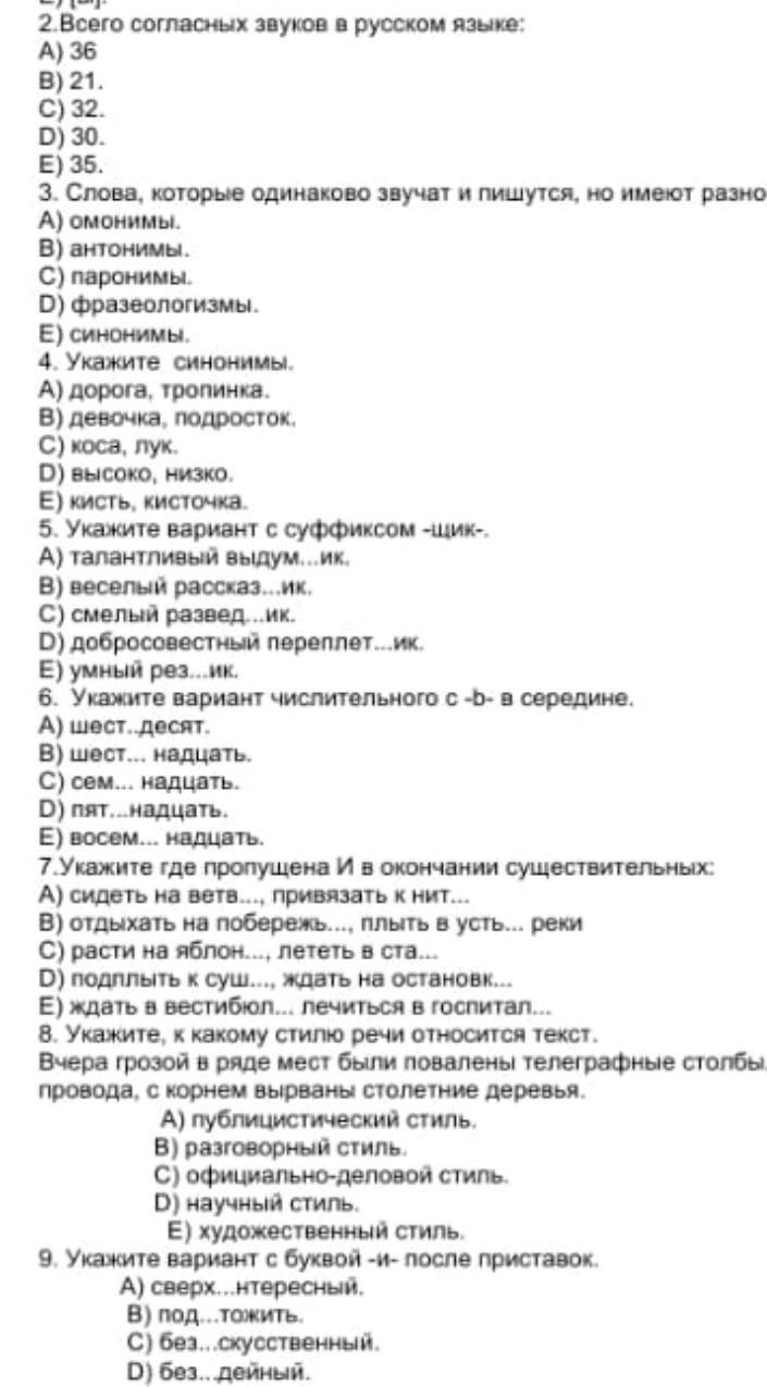 2)A; 3)B;4)D; 5)a;6)C; 7) E; 8) D; 9; C