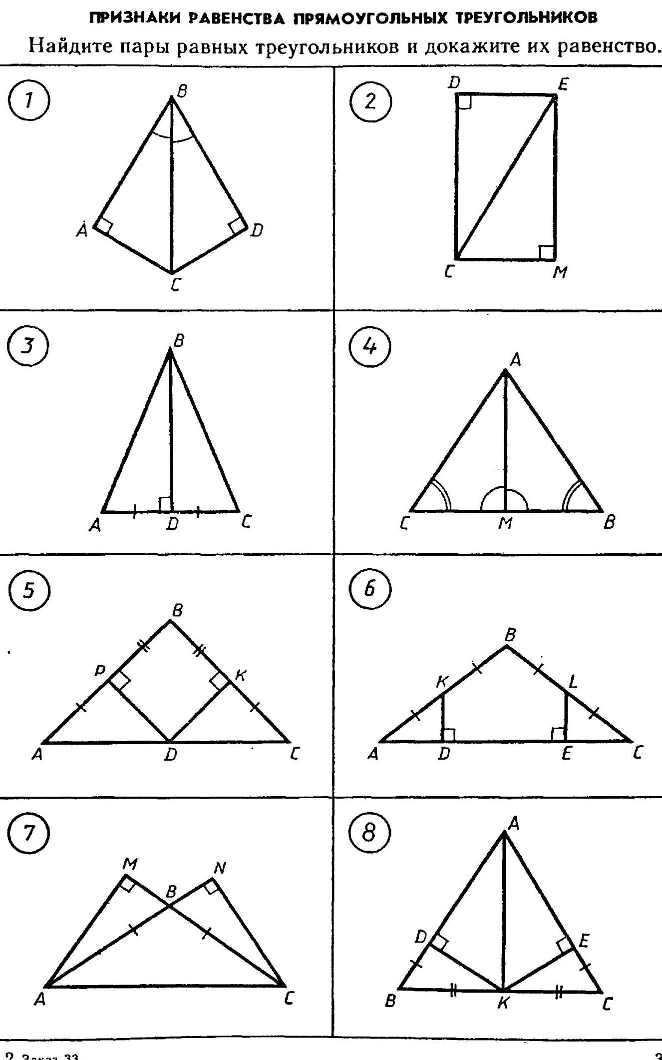 Найдите пары равных треугольников и докажите их равенство. Задания 6, 7, 8