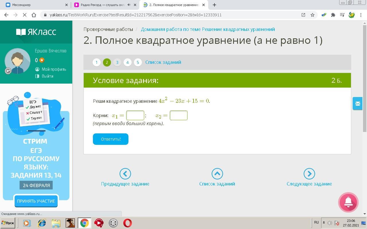 Реши квадратное уравнение 2(10x−13)^2−9(10x−13)+9=0