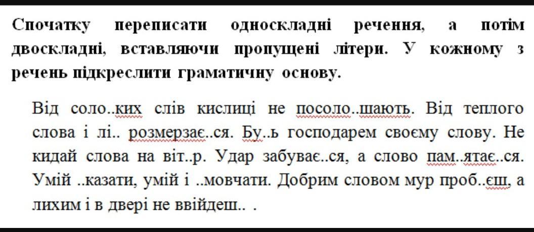 Помогите пожалуйста, грамматику я подчеркну сама , нудно только выбрать "односкладні и двоскладні речення" Дам 20 баллов