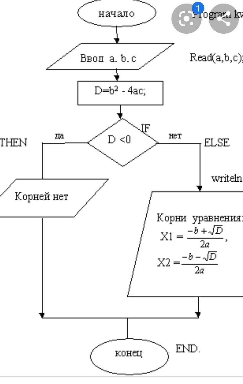 В самом первом блоке указано, что эта блок-схема касается уравнений, в которых имеются a,b,c