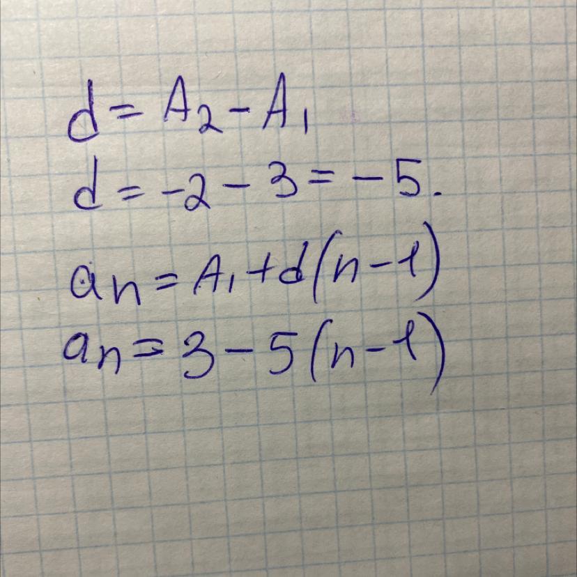 an = a1 + (n-1)*d = 3 - 5 * (n-1) - ответ