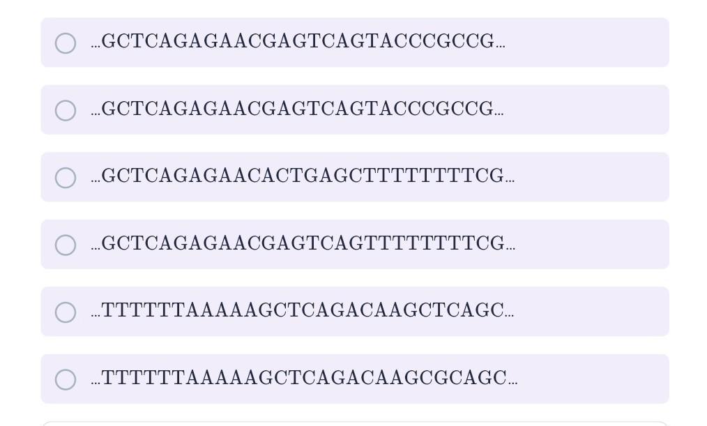 На какой последовательности наиболее вероятно закончится транскрипция бактериального оперона без участия ро-белка? Дана последовательность кодирующей цепи в направлении 5′ → 3′.