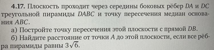 Егэшная стереометрия. Расстояние от точки до плоскости. В ответе 2, но у меня не получается. Прошу решить геометрически, не методом координат