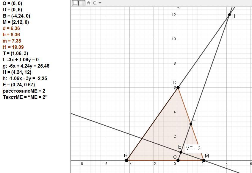 Значит высота треугольника ОТМ = 6/2 = 3.