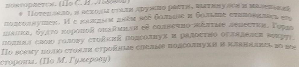 Олицетворение- всходы стали расти,вытянулся подсолнухгордо поднял свою головостояли стройные слепые подсолнухи и кланялись во все стороны