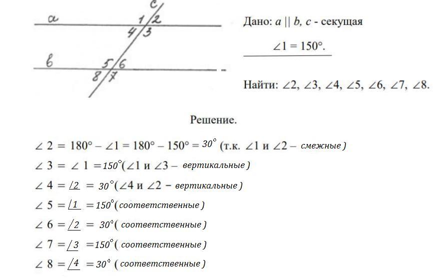 Ответ: <2=<4=<6=<8=30° , <1=<3=<5=<7=150° .