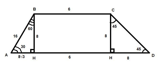 ΔАВН - прямоугольный, ∠A=30°, отсюда BH=16÷2=8 (катет, лежащий против угла 30° равен половине гипотенузы)⇒
