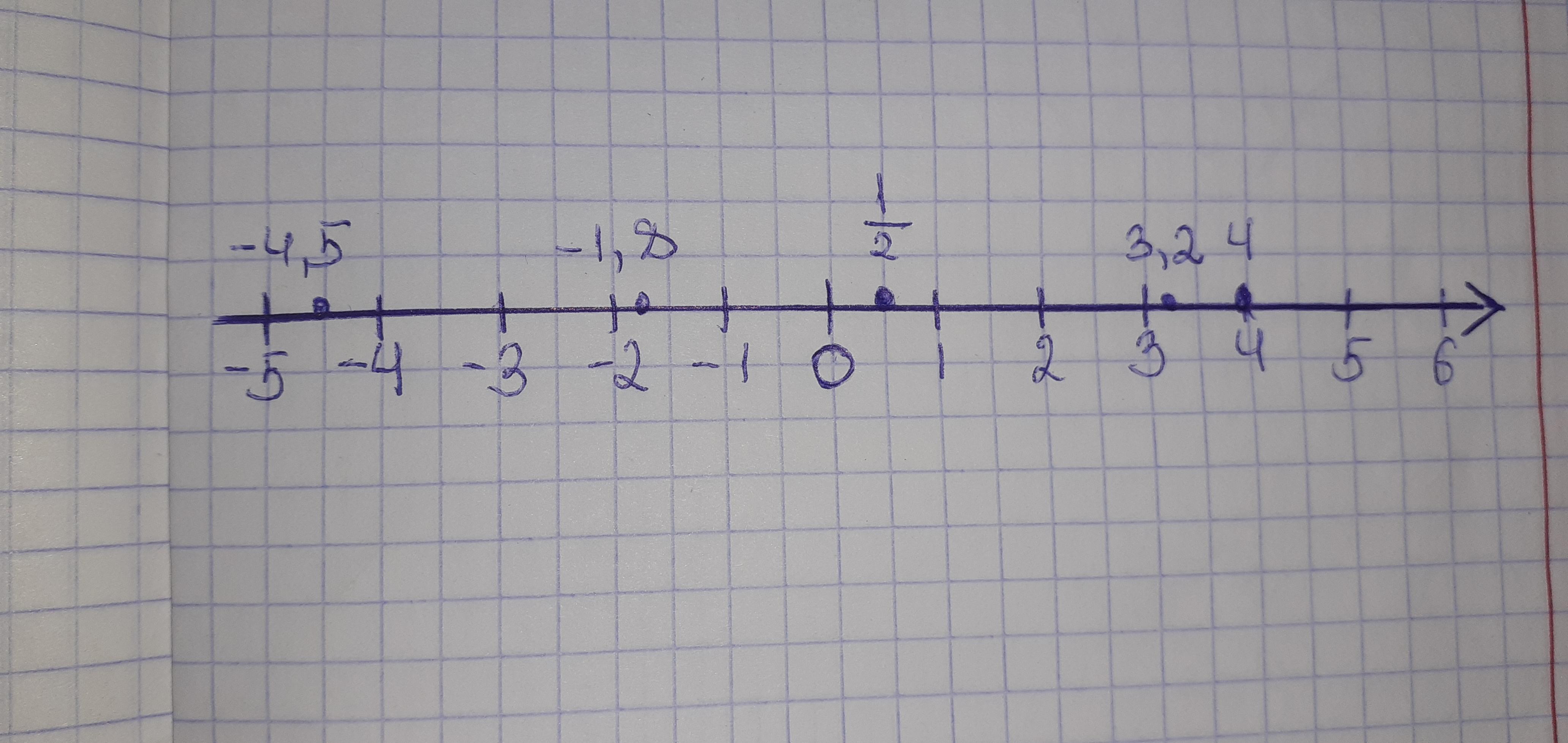 1. Отметьте на координатной прямой числа: -4,5; -1,8; 4 1/2;