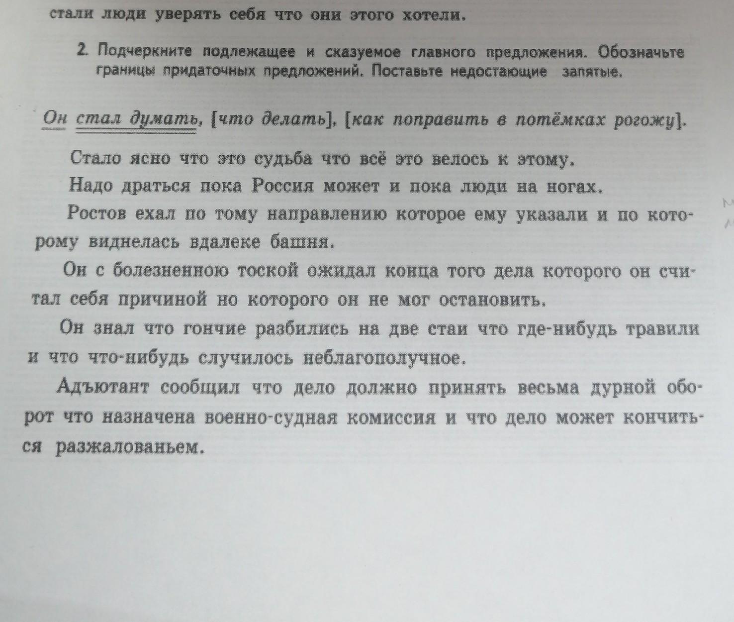 Он (подл.) знал (сказ), [что гончие разбились на две стаи], [что где-нибудь травили] и [что что-нибудь случилось неблагополучное].