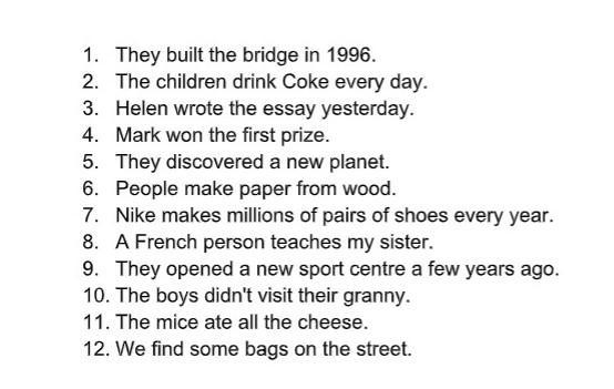 Напишите эти предложения в настоящем или прошлом пассивном.