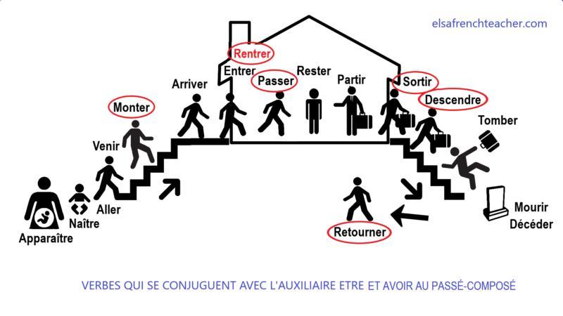 Как выбрать, глагол, который должен использоваться в качестве вспомогательного - avoir или être ? пользуемся рисунком ниже. На нем те основные (смысловые) глаголы, которые польуются глаголом être