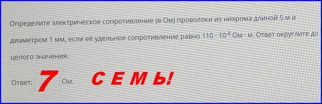 R=ρℓ/S=110*10⁻⁸/0,785=7,006...≈7 Ом.
