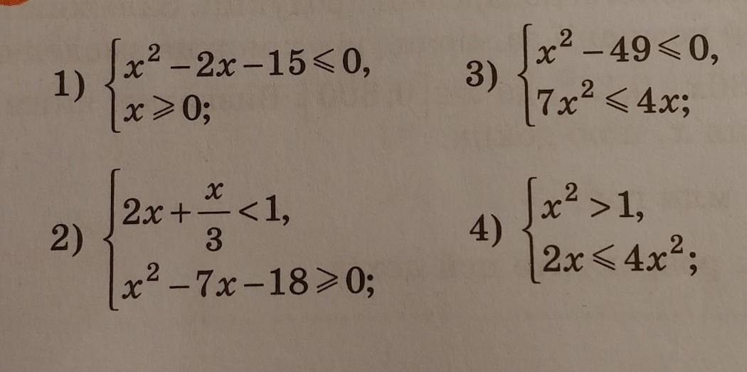 7x²≤4x ; 7x²- 4x ≤0 ; Решив второе уравнение как квадратное, получим: