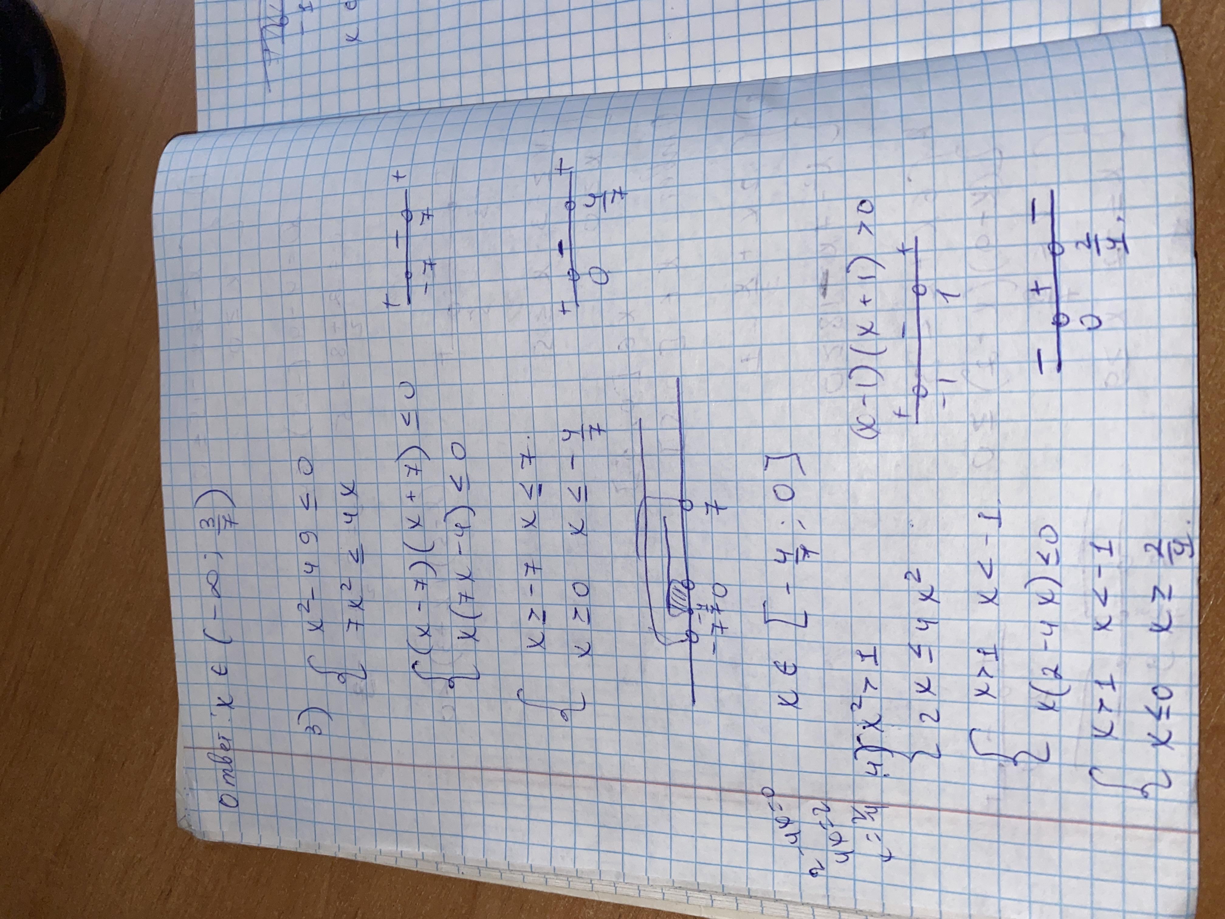 x₁=0 ; x₂=4/7. В первом нер-ве имеем x≥-7 ; x≤7
