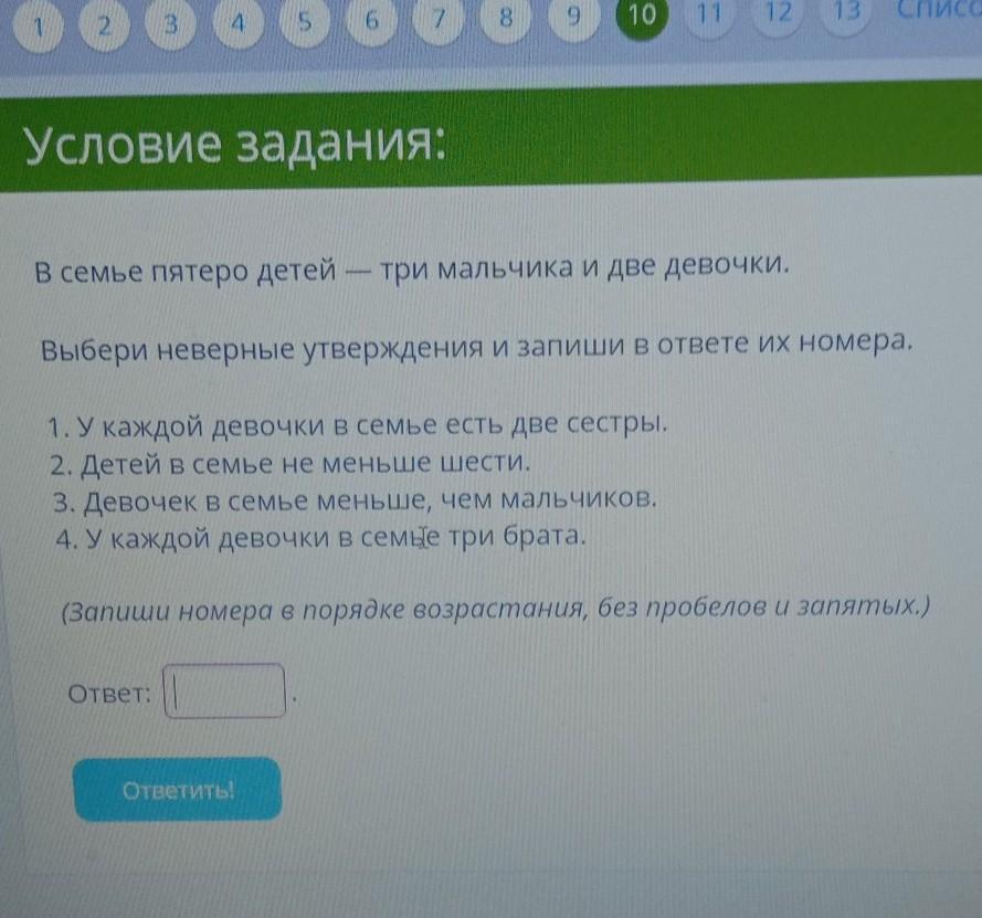 2 неверно, так как детей в семье меньше шести (пятеро).