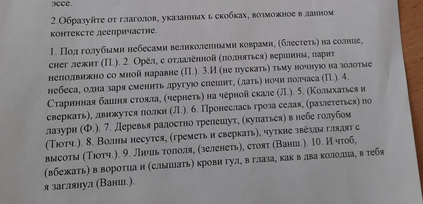 блестя, поднимаясь, не пуская, давая, чернея,колыхаясь и сверкая,разлетаясь,купаясь , гремя и сверкая, зеленея, вбегая, слыша