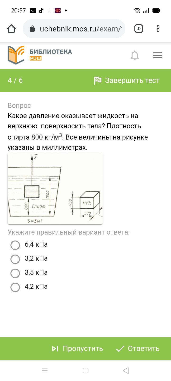 800*10*0,4=800*4=3 200 Па=3,2 кПа - это ответ.