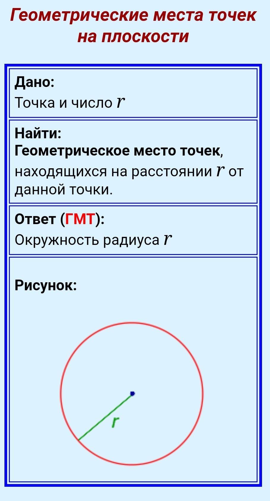 ДАМ 20 ИЛИ 30 БАЛЛОВ Дайте означення геометричного місця точок. Назвіть геометричне місце точок, віддалених від даної точки на задану відстань.