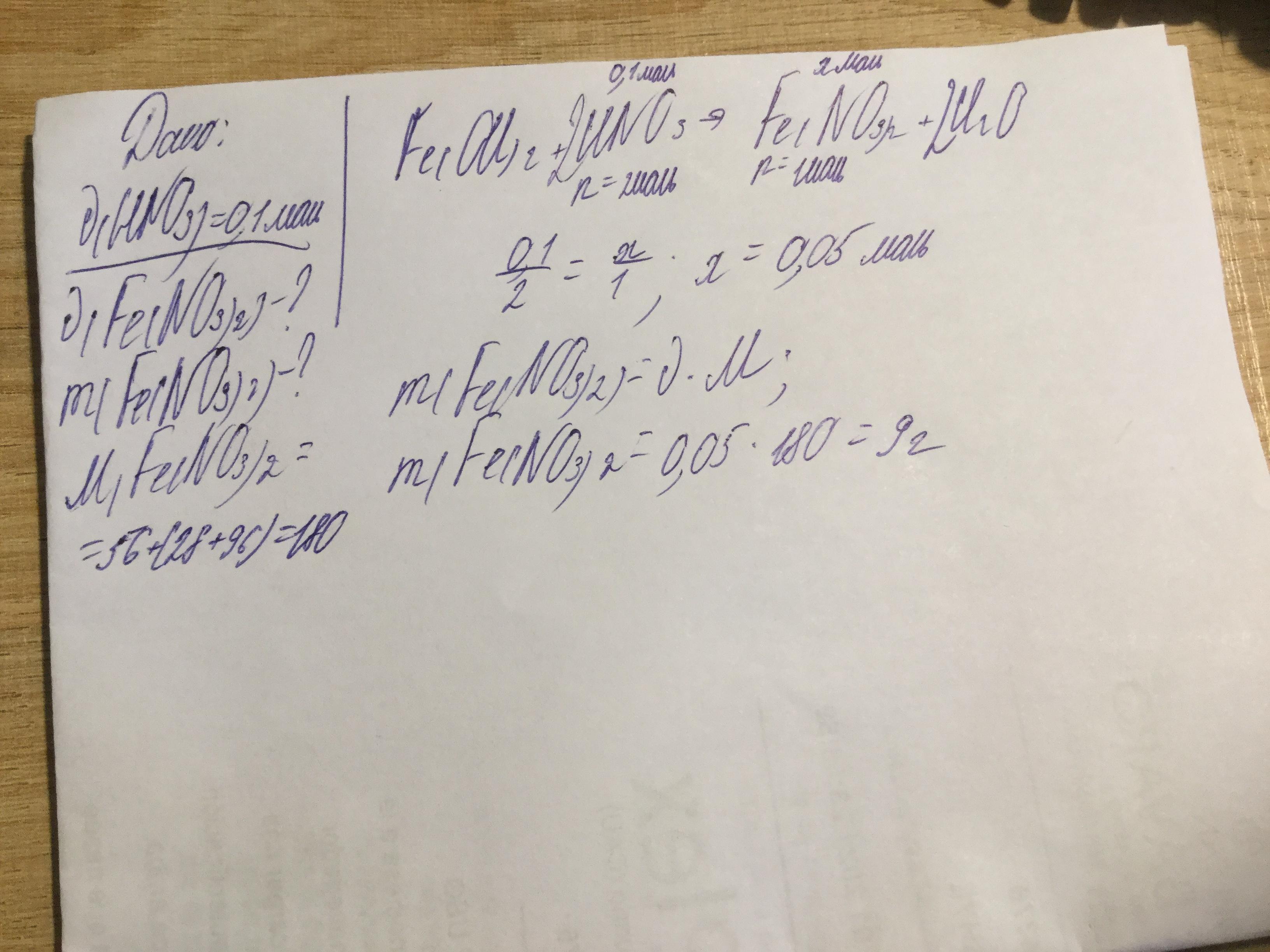 Определите количество вещества и массу нитрата железа (II), образующегося при реакции