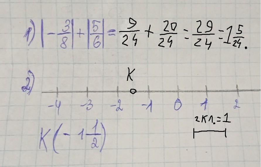 спасибо большое, за первое задание я поняла а за второй ещё не доперла. просто я понимаю точку К как: 1 целая где-то между -1 и -2, а 1/2 не могу понять на что обращать внимание. Суть вопроса- что означает чисельник і знаменник, где их обозначать на координатной прямой? :(