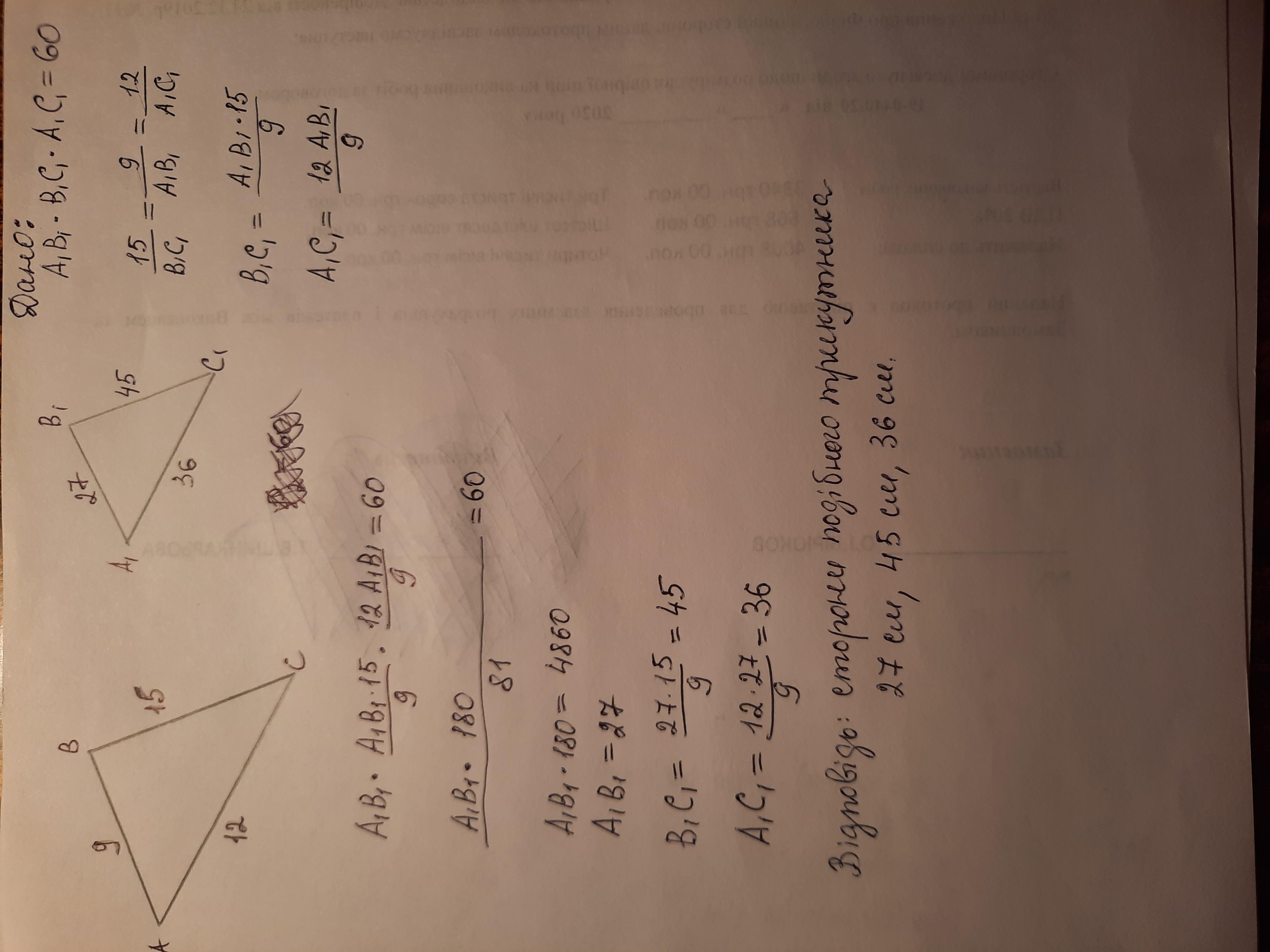трикутника доривнюе 9 12 и 15 добуток сторин подземного трикутника доривнюе 60 Найдите стороны подобного треугольника