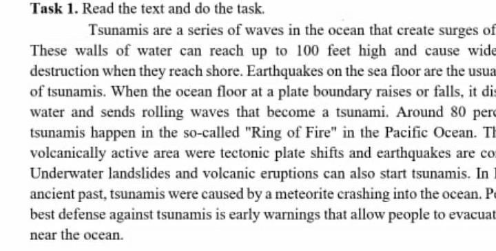 4. Earthquakes on the sea floor are the usual cause of tsunamis.