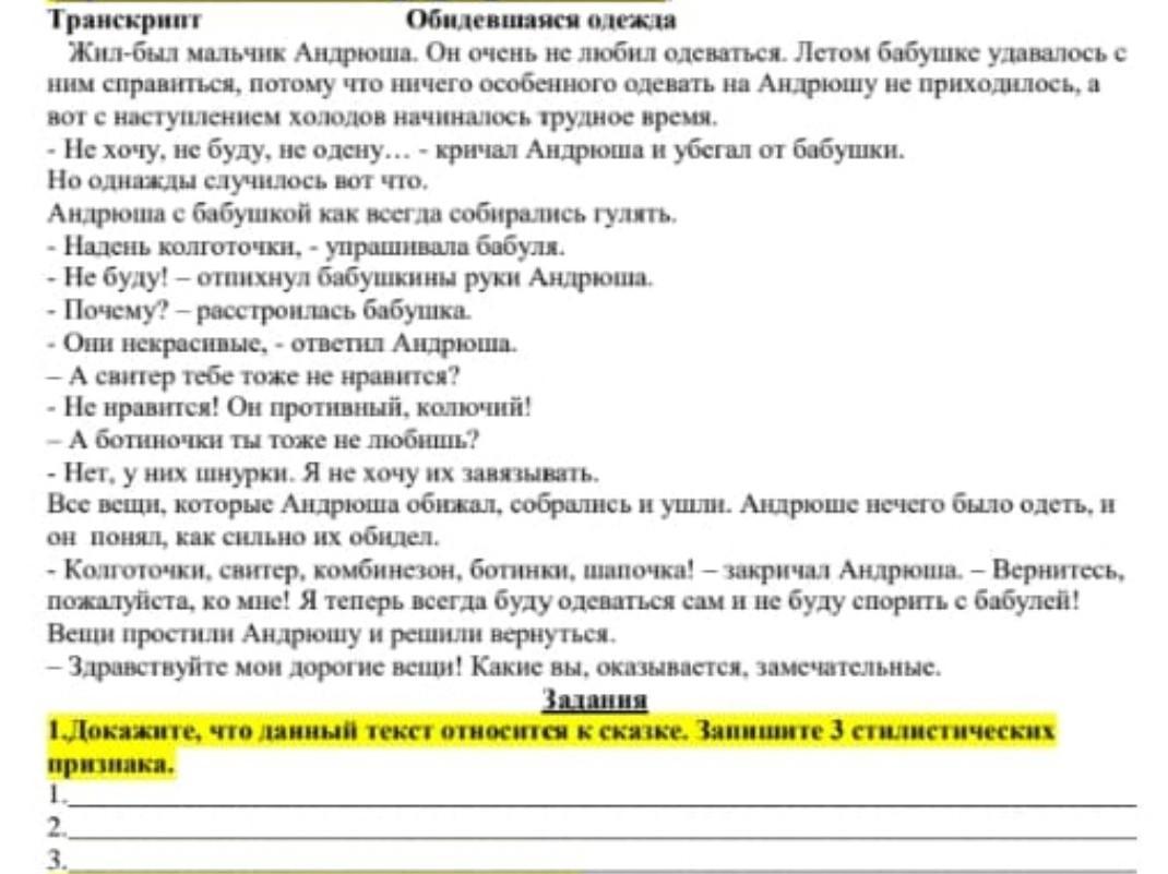 1.Докажите, что данный текст относится к сказке. Запишите 3 стилистических