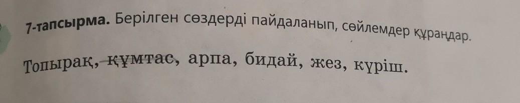 Жаңбырдан соң топырақ ылғал болды. Есік алдына құм, тас төгілген. Базардан арпа сатып алдық. Бидайдан ұн тарттық. Әжемнің жез құманы бар. Әжем күріш көже жасады.
