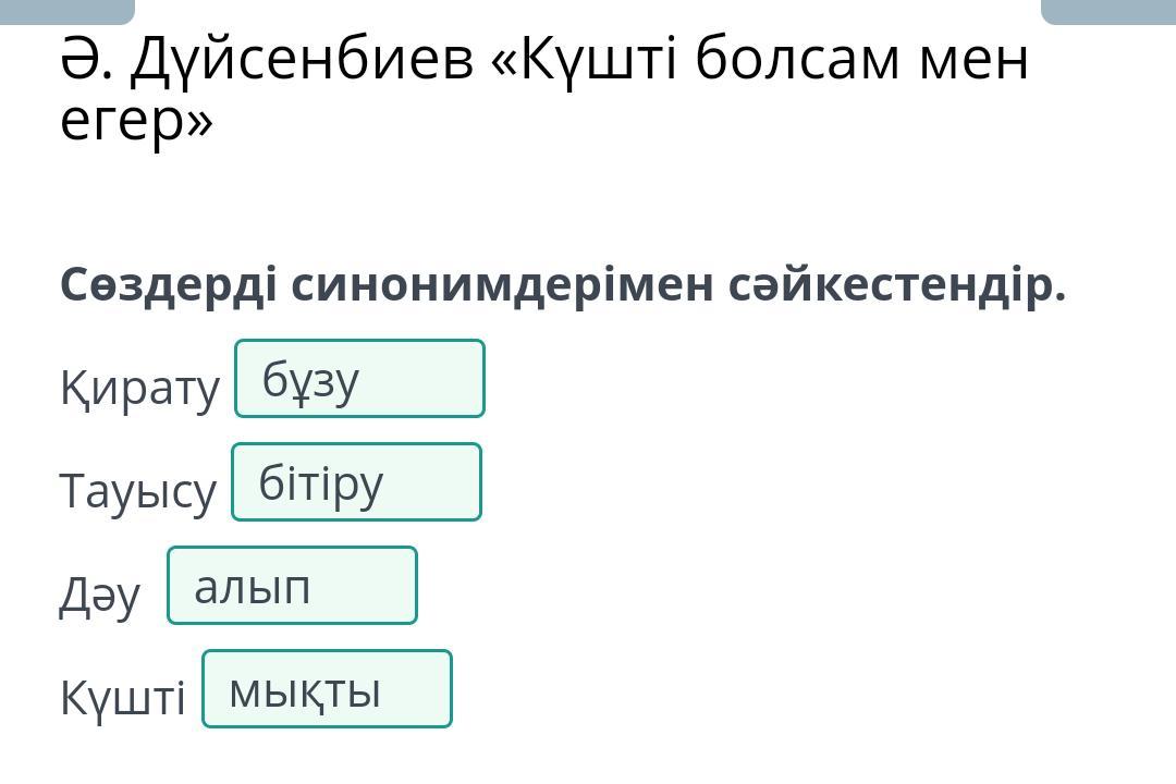 Сөздерді синонимдерімен сәйкестендір.