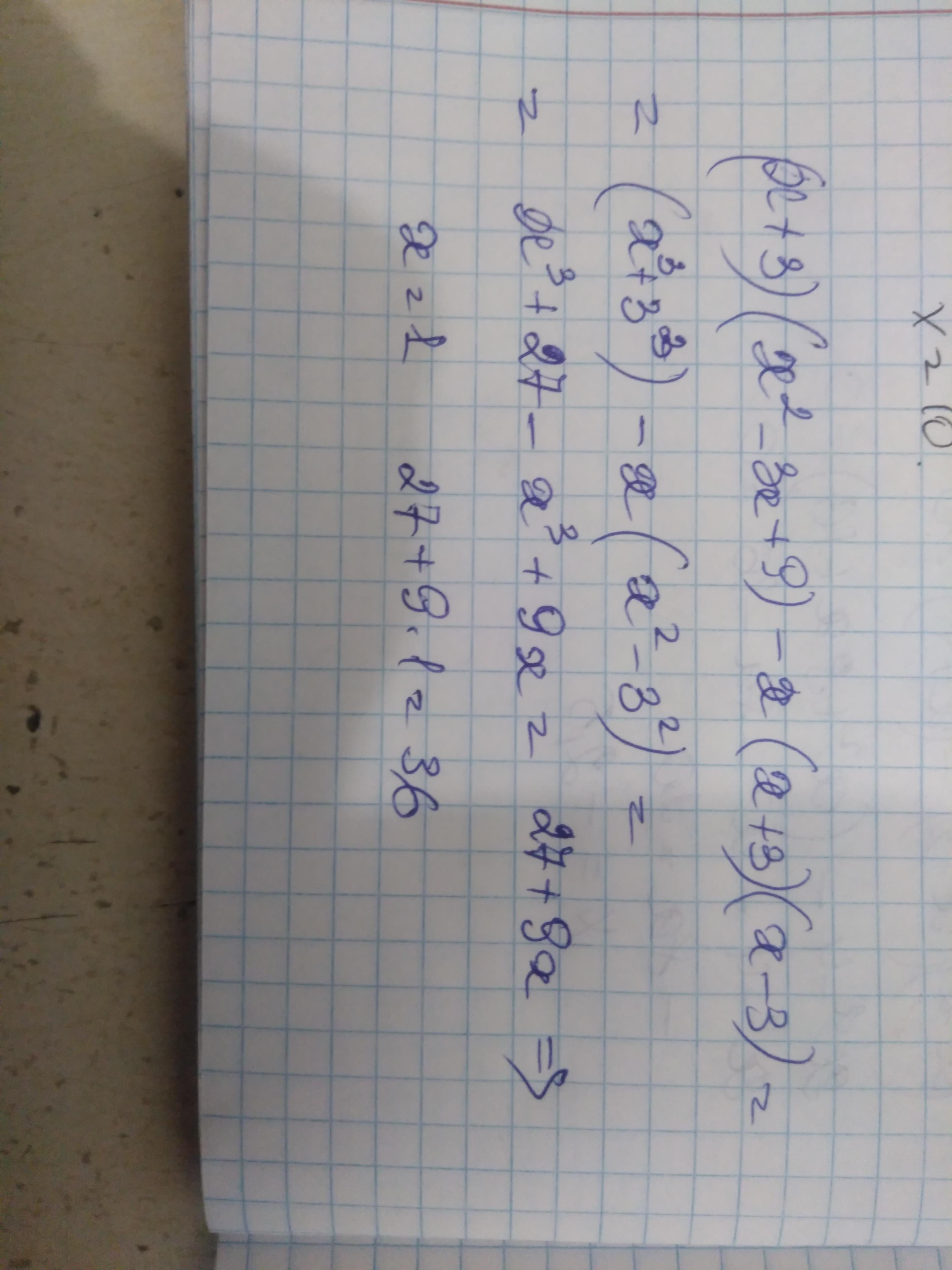 Покажите, что значение выражения (x+3)(x^2-3x+9)-x(x+3)(x-3) при x=1 равно 36 Пажалуйста СРОЧНО