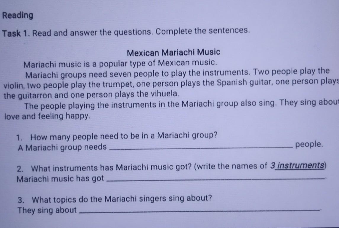 2. What instruments has Mariachi music got? (write the names of 3 instruments)