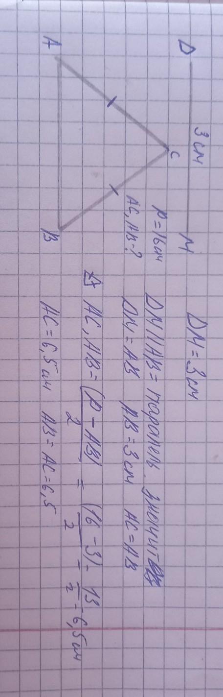 1. Средняя линия равнобедренного треугольника, параллельная основанию, равна 3 см. Найдите
