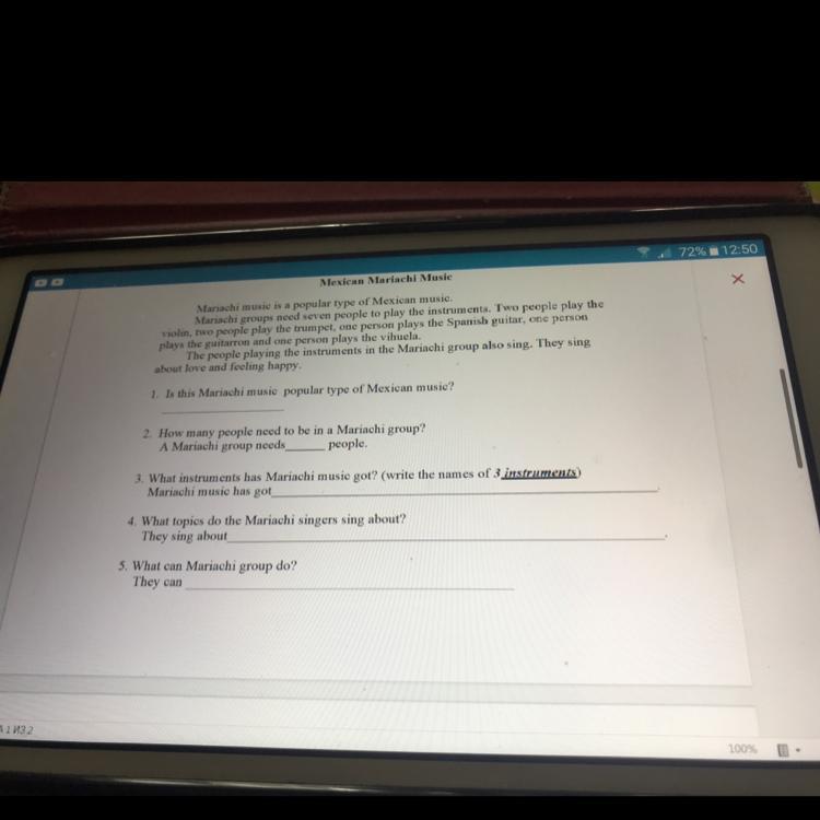 3. Mariachi music has got the following instruments: the violin, the trumpet, the Spanish guitar, the guitarron, the vihuela.