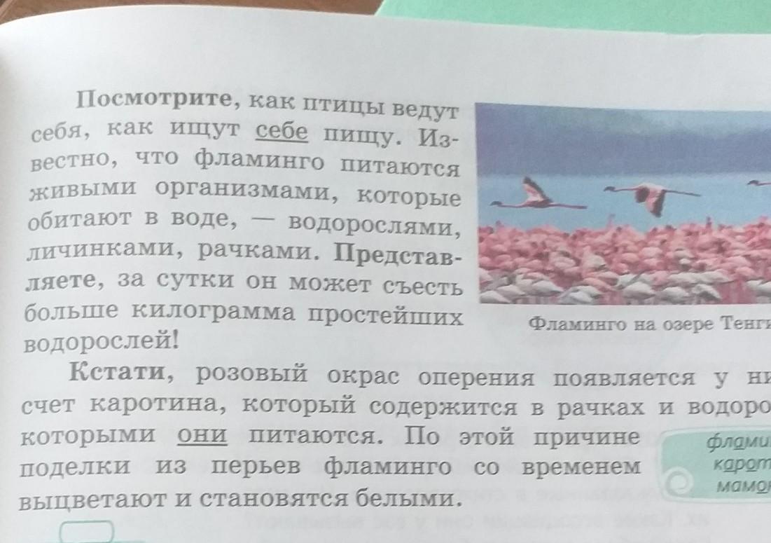 необычность фламинго? Прочитайте выделенные слова, словосо-