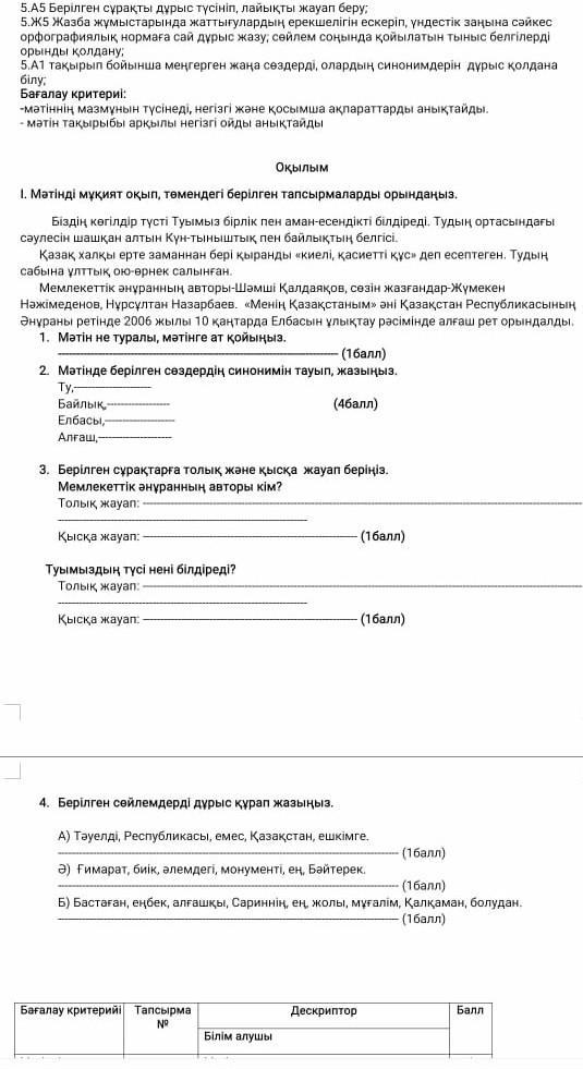 4. Берілген сөйлемдерді дұрыс құрап жазыңыз.