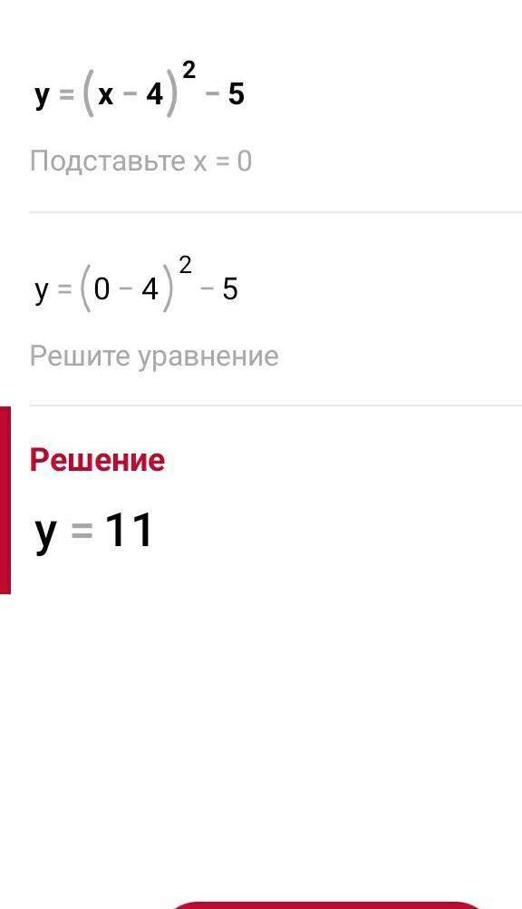 2. Дана функция: у = (х - 4)²- 5 а)напишите координаты вершины параболы; c) ось симметрии параболы: e) постройте график функции. СРОЧНО ДАМ 30БАЛЛОВ