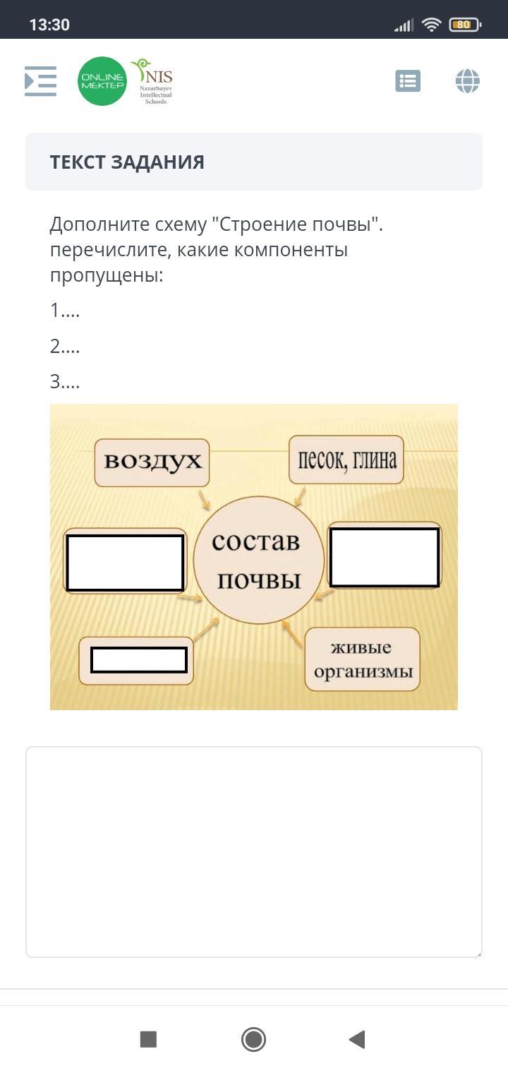 Почва состоит из твердой, жидкой и газообразной частей. В твердой части почвы содержаться основные запасы питательных элементов. Она состоит из минеральной (90-98%) и органической частей. Минеральная часть почвы состоит на 90% из трех элементов: кислорода, кремния и алюминия.