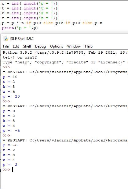 p = p * t if p>0 else p+k if p<0 else p-z