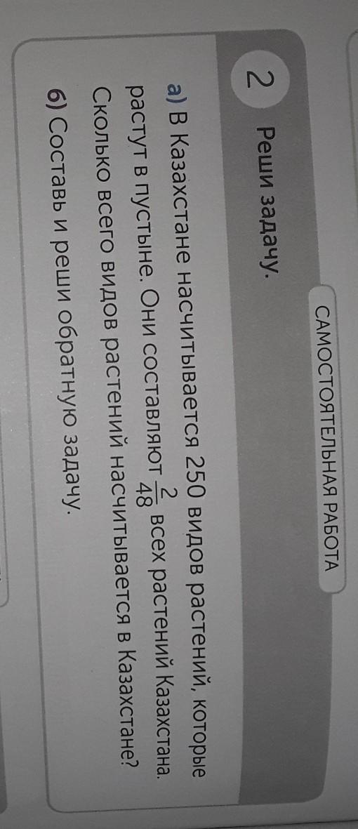 б) Всего в Казахстане насчитывается 6000 видов растений. Сколько видов растений , которые растут в пустыне, если они составляю 2/48 части от всех видов, которые растут в Казахстане ?