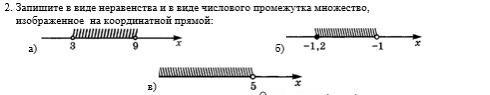 Запишите в виде неравенства и в виде числового промежутка множество, изображенное на координатной прямой:
