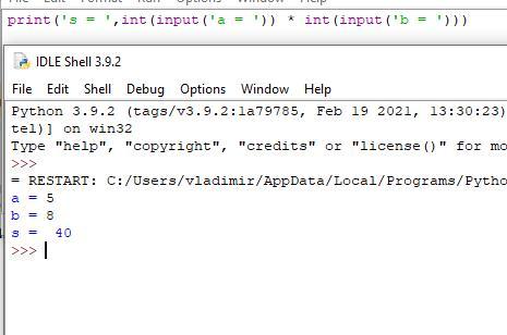 print('s = ',int(input('a = ')) * int(input('b = ')))